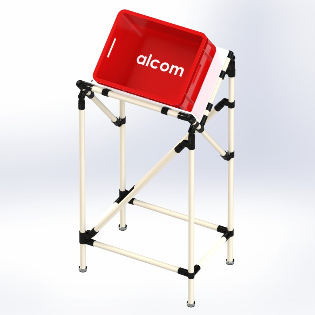Ergonomic Single Bin Display Stand designed for efficient parts picking at workstations.